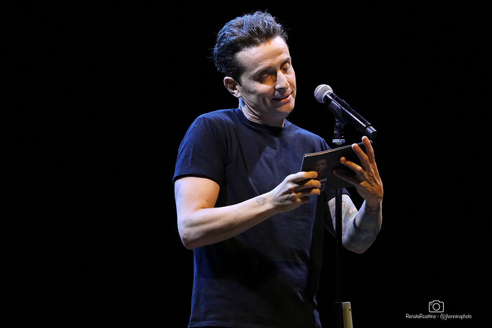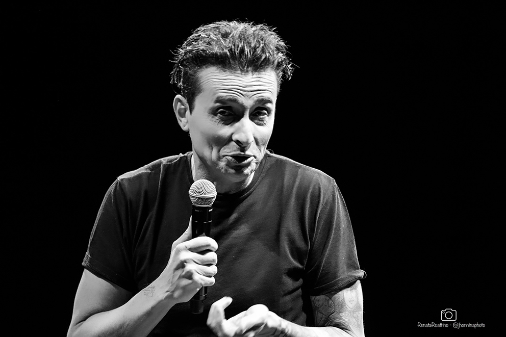 La sua capacità di tenere il palco è straordinaria. La scuola dei “villaggi” e dell’improvvisazione teatrale è una forza travolgente; in scena c’è un comico completo, in grado di correre a perdifiato per due ore tra metafore e scanzonate prese in giro del nostro umano disagio e far ridere senza interruzione per oltre 120 minuti di show . Ma anche capace di commuovere, sul finale, con una riflessione sulla vita.