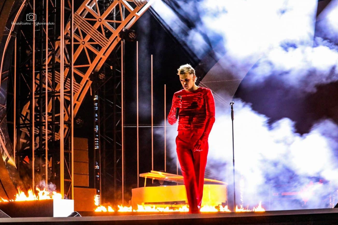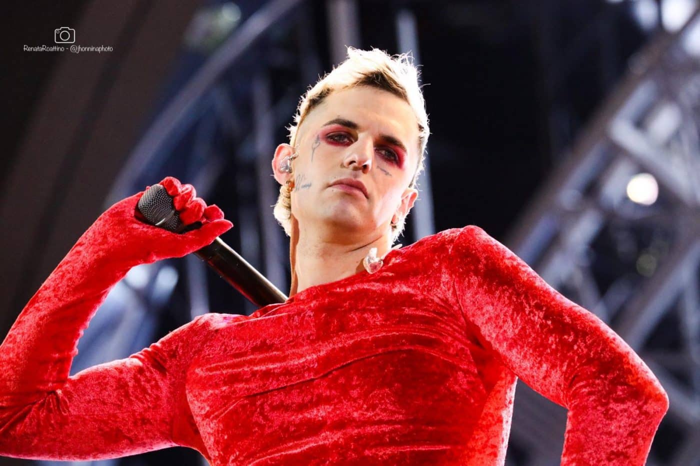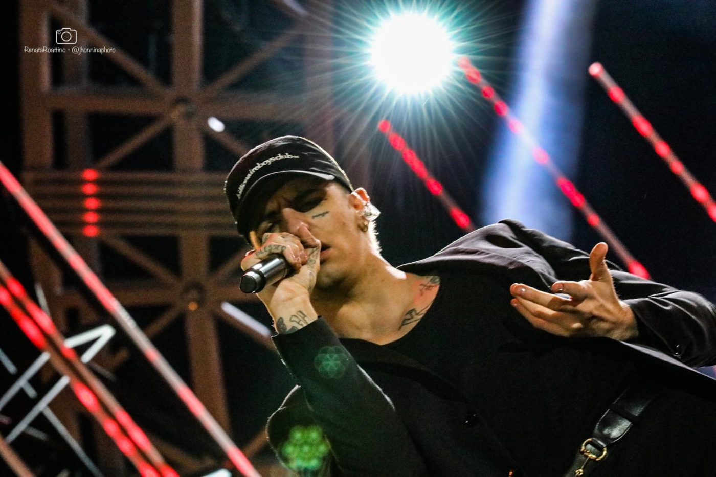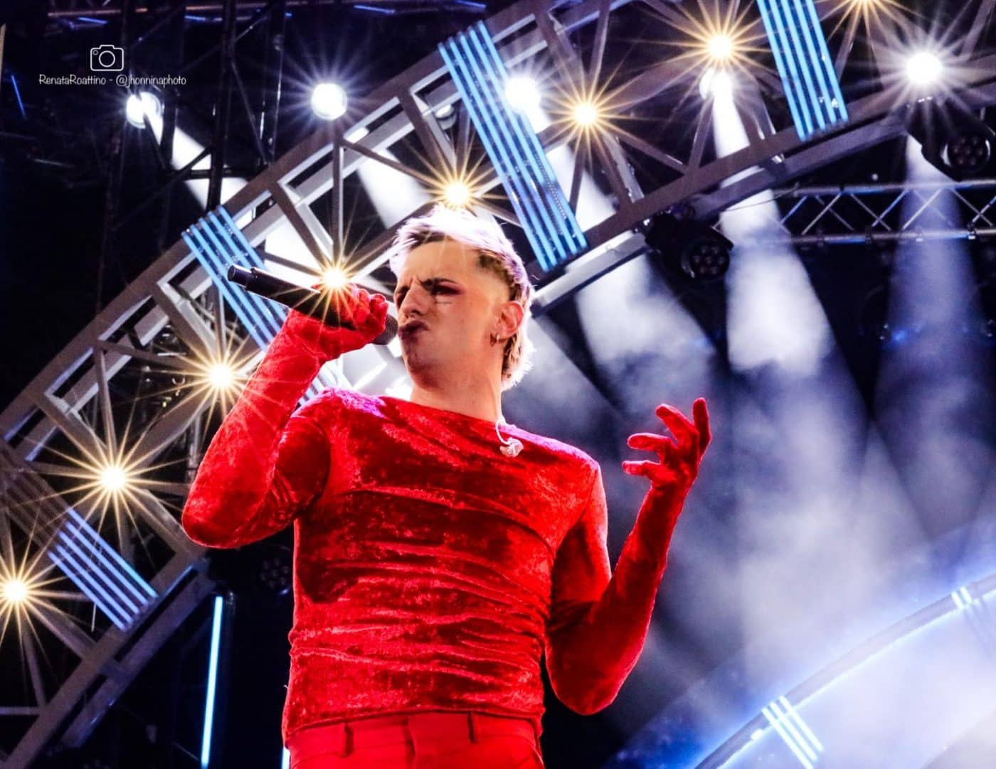 Il mini live di Achille Lauro non ha deluso i fans. Ospite finale della rassegna Tra palco e città, fortemente voluta da Rai pubblicità e dall’amministrazione comunale, Lauro è salito sul palco come un diavolo rosso dagli occhi iniettati di sangue. Inguainato in maglia-pantaloni-guanti rosso vivo che quasi non lo distingueva dal fondale e dalle luci rendendolo parte vivente della scenografia e forte di una band che lo ha supportato con una ritmica incalzante, il cantante ha mantenuto fede alla sua fama di camaleonte del palco.