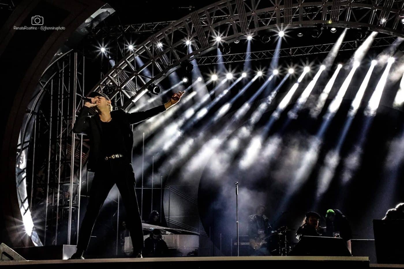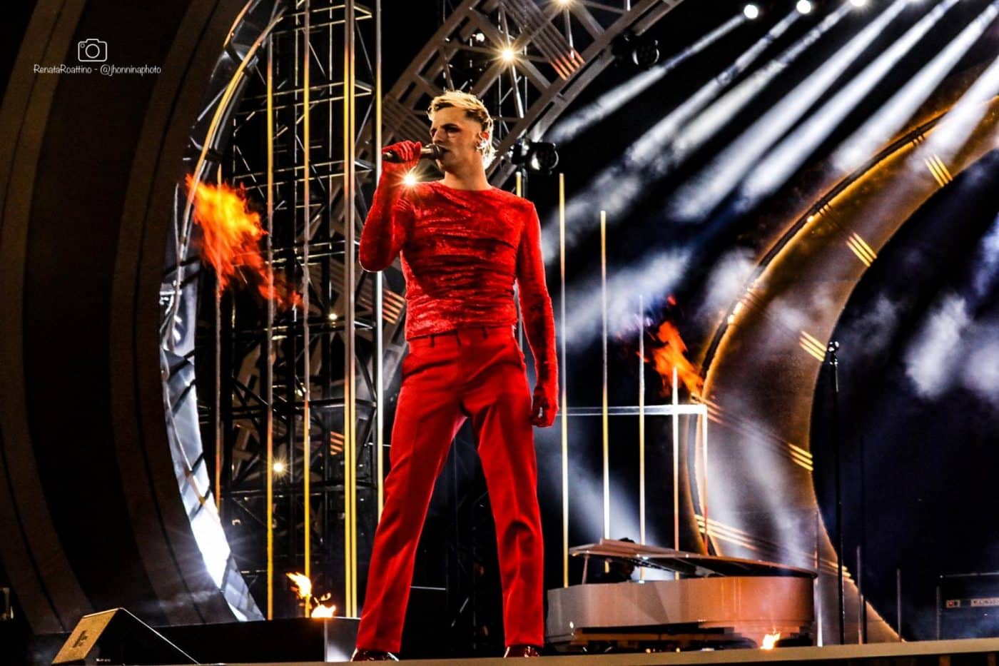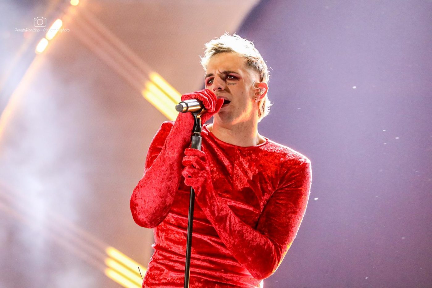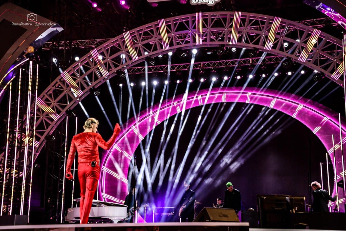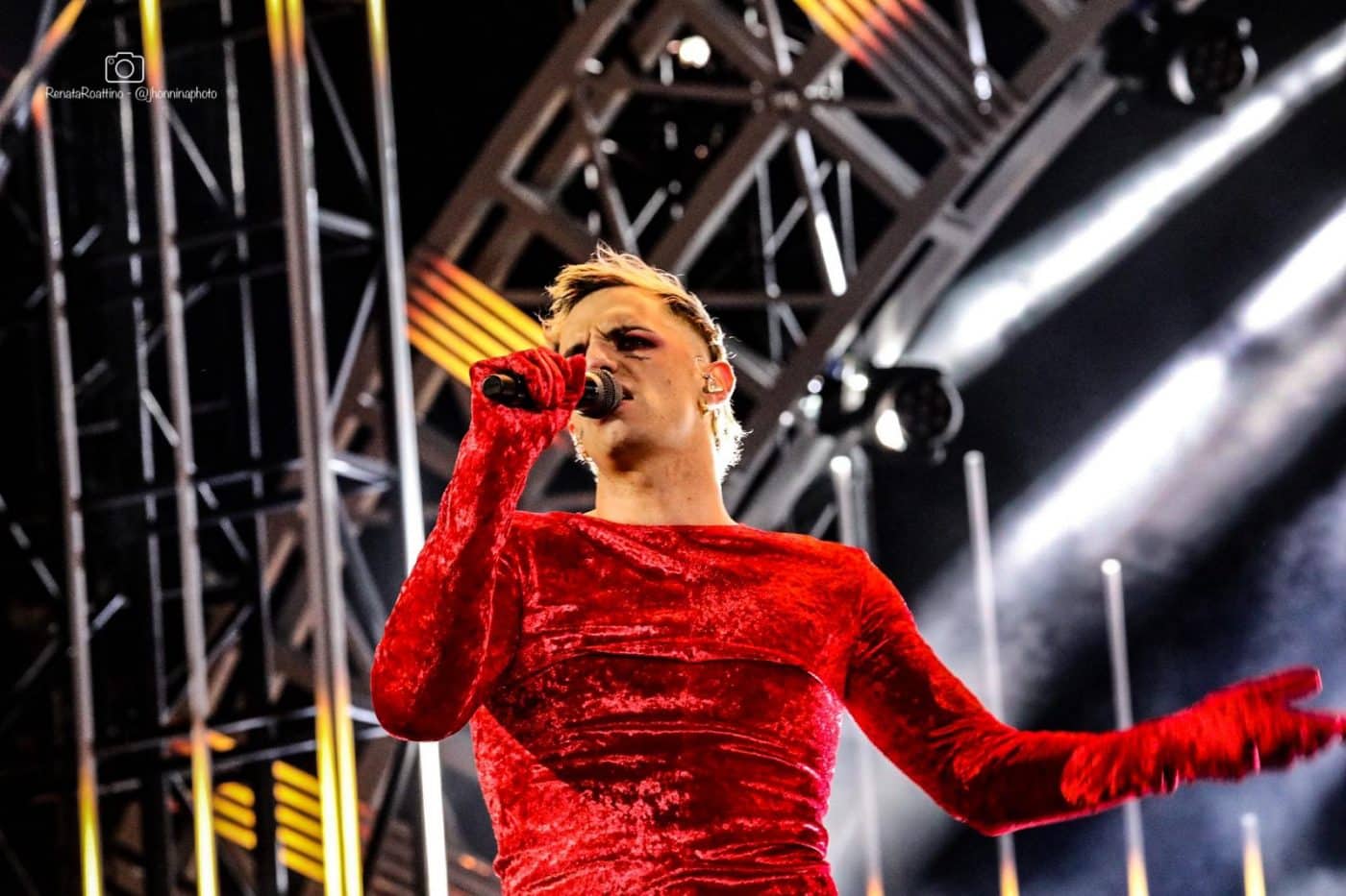 Il mini live di Achille Lauro non ha deluso i fans. Ospite finale della rassegna Tra palco e città, fortemente voluta da Rai pubblicità e dall’amministrazione comunale, Lauro è salito sul palco come un diavolo rosso dagli occhi iniettati di sangue. Inguainato in maglia-pantaloni-guanti rosso vivo che quasi non lo distingueva dal fondale e dalle luci rendendolo parte vivente della scenografia e forte di una band che lo ha supportato con una ritmica incalzante, il cantante ha mantenuto fede alla sua fama di camaleonte del palco.
