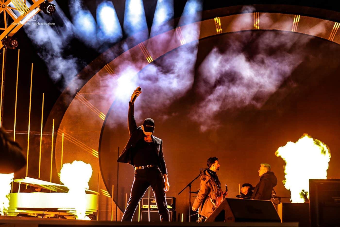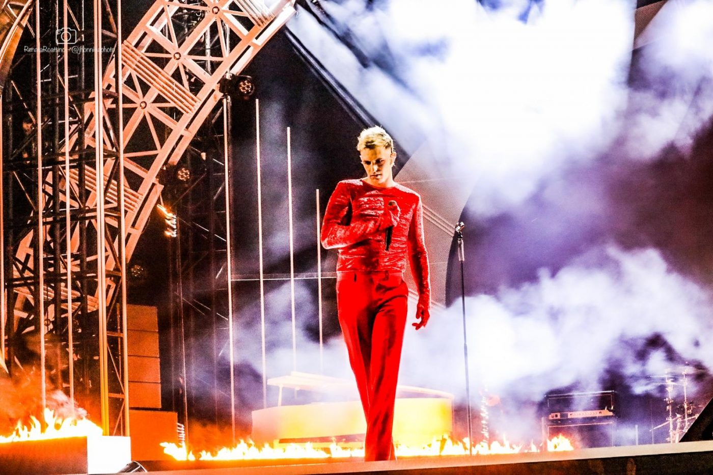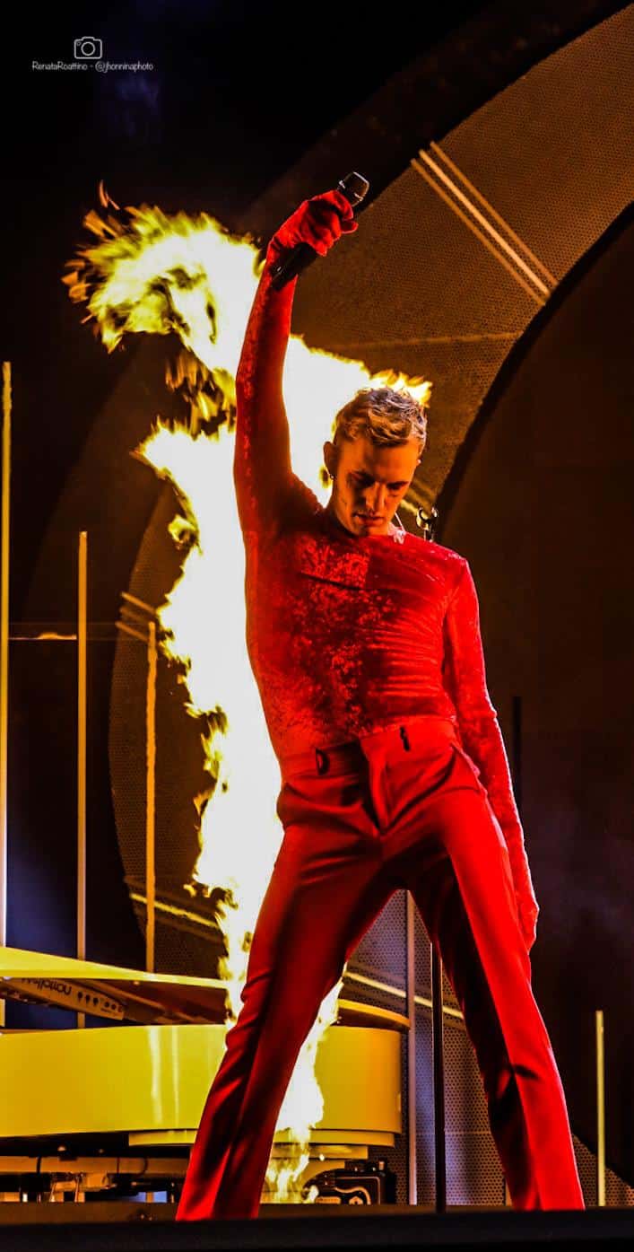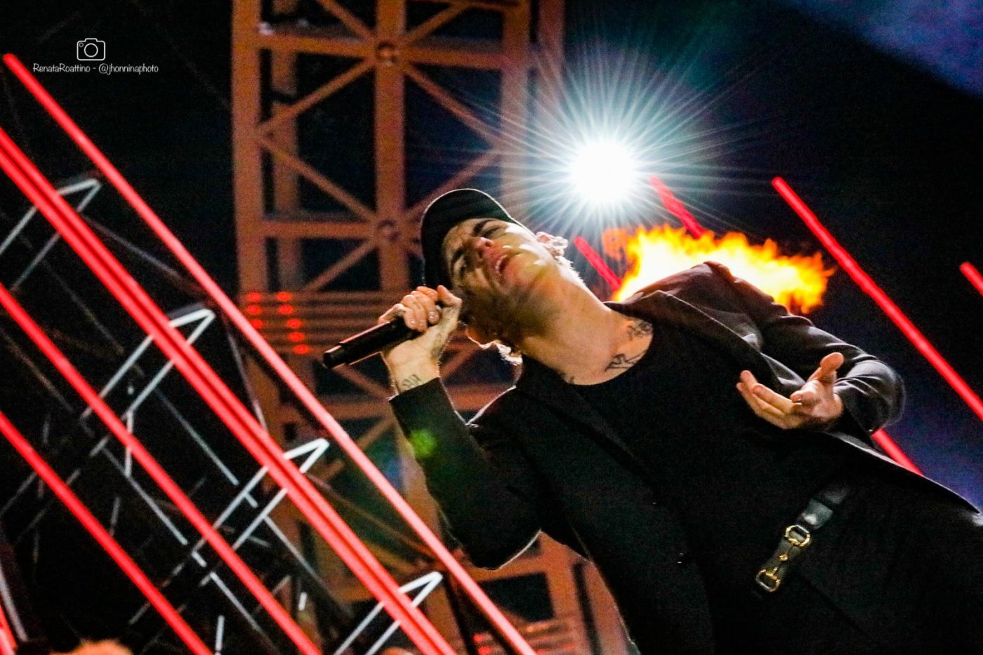 Il mini live di Achille Lauro non ha deluso i fans. Ospite finale della rassegna Tra palco e città, fortemente voluta da Rai pubblicità e dall’amministrazione comunale, Lauro è salito sul palco come un diavolo rosso dagli occhi iniettati di sangue. Inguainato in maglia-pantaloni-guanti rosso vivo che quasi non lo distingueva dal fondale e dalle luci rendendolo parte vivente della scenografia e forte di una band che lo ha supportato con una ritmica incalzante, il cantante ha mantenuto fede alla sua fama di camaleonte del palco.