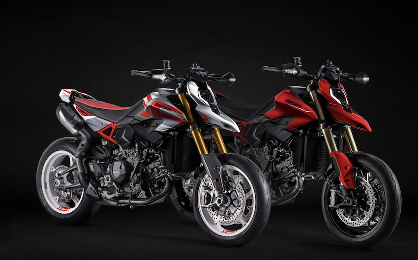 La SP, con cerchi forgiati bianchi, sospensioni Öhlins e dettagli racing in carbonio, è un omaggio ai vent’anni della saga Hypermotard.