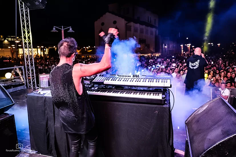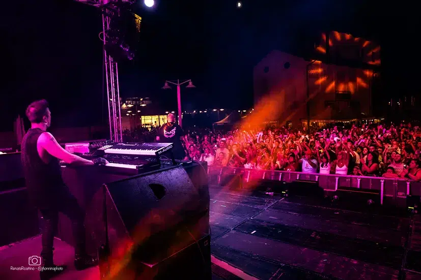Palco illuminato da strobo e spot, fumi, un grande ledwall centrale e soprattutto giochi pirotecnici, fontane di fuoco che si alzavano davanti al pubblico giochi di luce proiettati sugli edifici intorno al palco. Casse a palla, musica dance nelle orecchie e tanta voglia di ballare. Questo il concerto in sintesi.