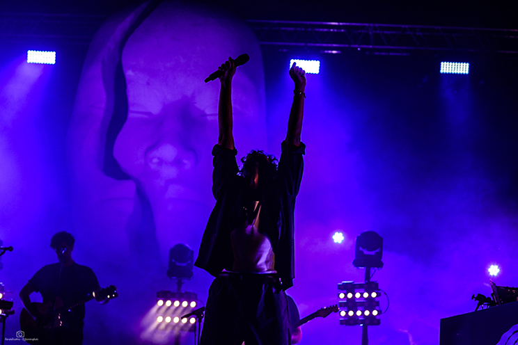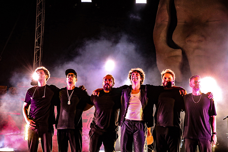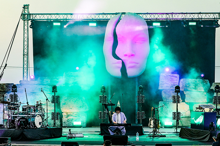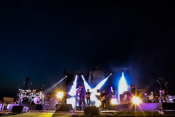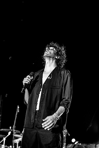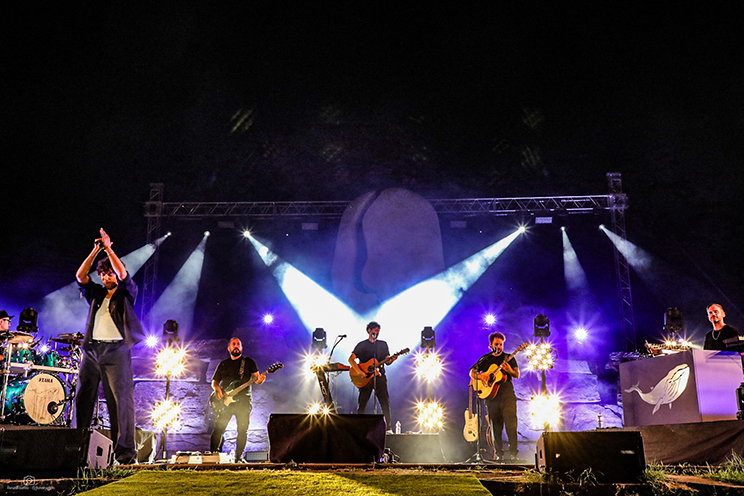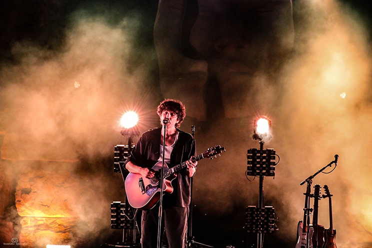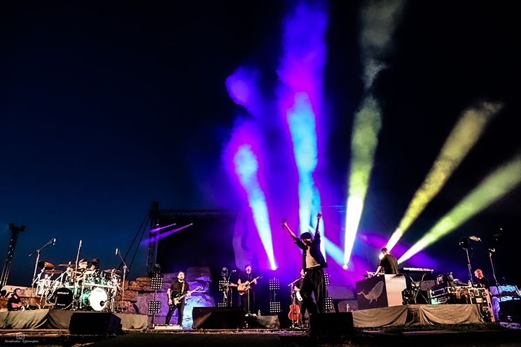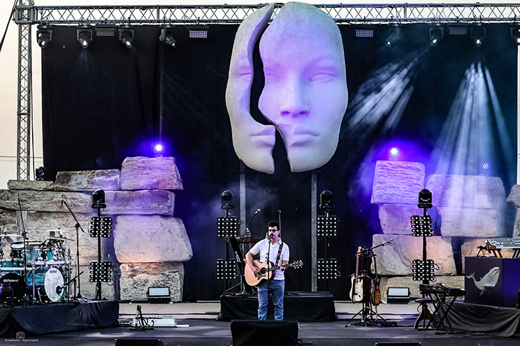 Il palco sotto la grande statua era ricco come non mai a Cervere. Luci ed effetti da stadio hanno esaltato una arena rendendola ancora più bella e suggestiva grazie ad uno show che per quasi due ore ha raccontato la storia in musica di Ermal Meta.