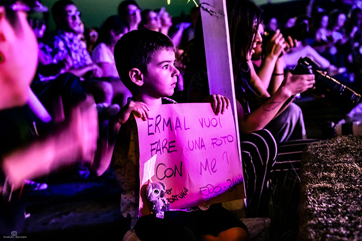 Il concerto, aperto da Stefano Devalle e Fellow, è stato ricco e coinvolgente. Ermal si è dato al pubblico, ha scelto di abbattere la barriera fisica del palcoscenico e, grazie alla lunga passerella che varcava il laghetto intorno al palco, è sceso tra i fan, ha cantato in mezzo a loro, si è emoziato ai regali per la figlia nata da poco ribadendo che il suo amore per i bambini, da sempre presente come sentimento guida della sua vita, da quando è nata sua figlia è aumentato in modo esponenziale.