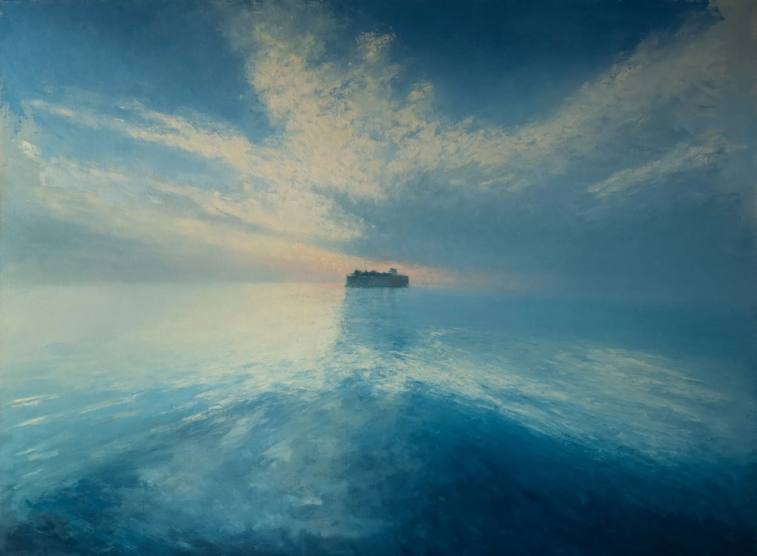Un giorno, mentre ero con mia figlia e non potevo dipingere, è apparso nella nebbia: sono tornato in studio e ho provato a inventarmelo, ho fatto una barca strana con una luce nella nebbia. L’ho fatto vedere a un amico che subito mi ha chiesto: hai mai letto Le bateau ivre di Rimbaud? Io ho sempre cercato immagini nella letteratura, ma amo ancora di più quando un mio quadro ricorda qualcosa a qualcun altro”. Così, ammirando il dipinto di una Venezia immersa nella luce e nel colore, i nostri pensieri e le nostre emozioni possono arrivare ovunque, tra le pagine di un libro, oppure nelle note di una canzone».