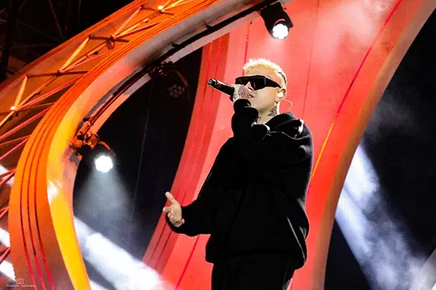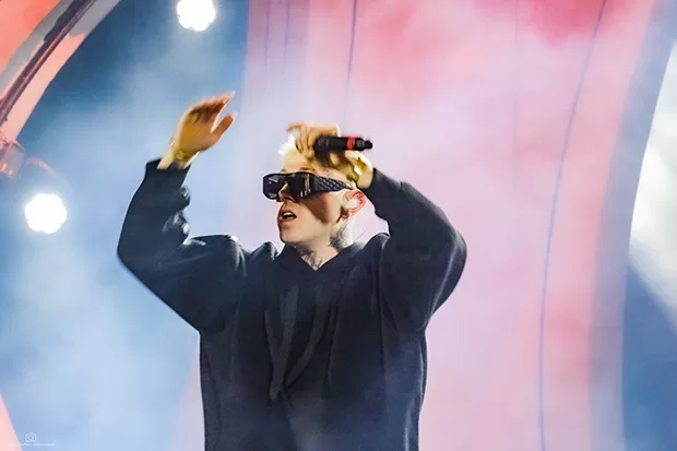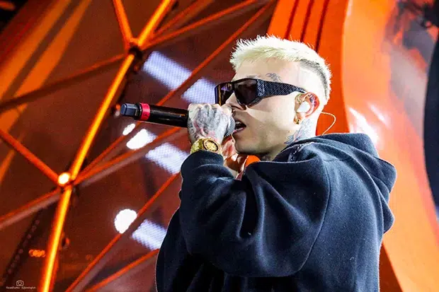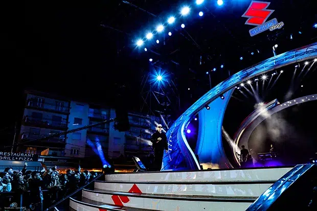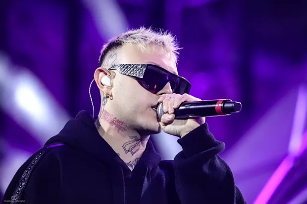 Lazza, al secolo Jacopo Lazzarini, ha aperto il Suzuki Stage, il palco di fianco all’Ariston, nella prima serata di Sanremo.