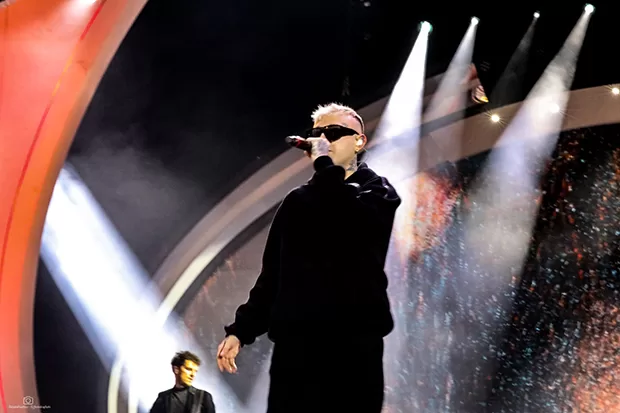 Presentato da Amadeus dentro l’Ariston, è apparso sul palco esterno dove ha riproposto Cenere, ha chiesto al pubblico di saltare, accendere gli accendini e creare il clima da live che tanto gli manca, come ha detto al pubblico presente.