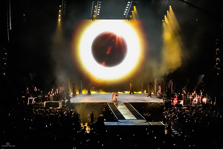 Dietro ogni luce, costume, immagine e suono c’è il pensiero dell’artista. Il tour è progettato come uno spettacolo teatrale: sei capitoli che vanno dal Prologo (le rovine del nostro passato) alla Catarsi (la rinascita).