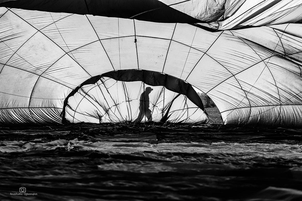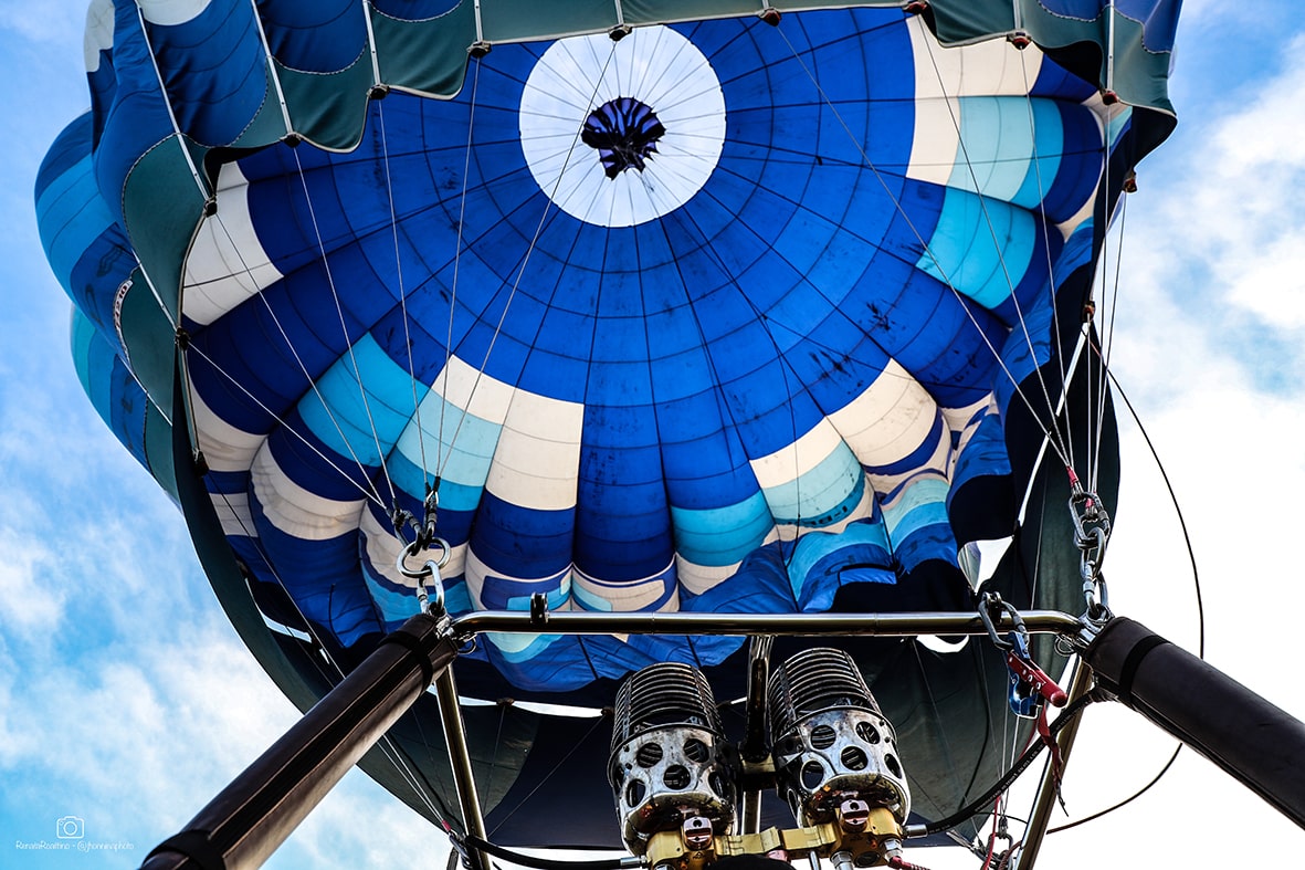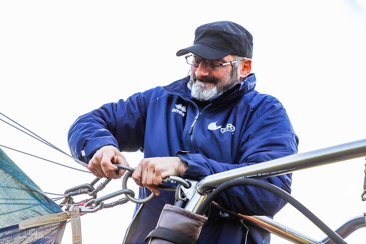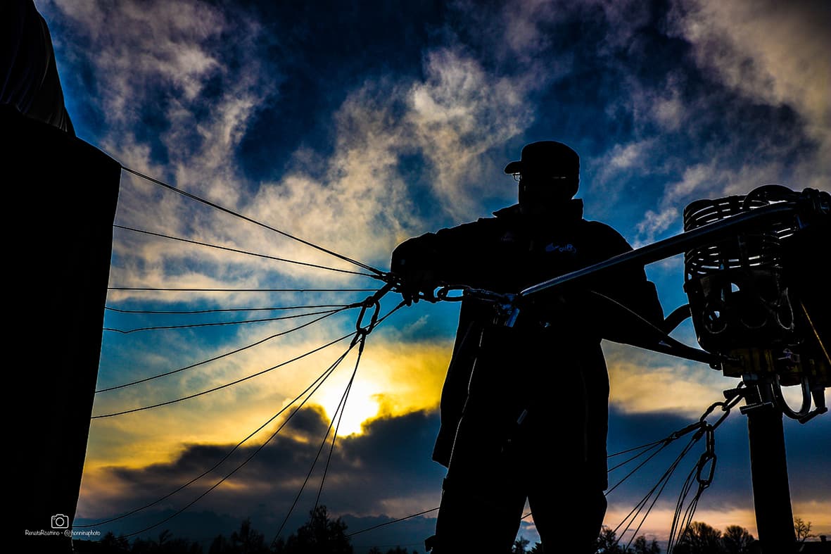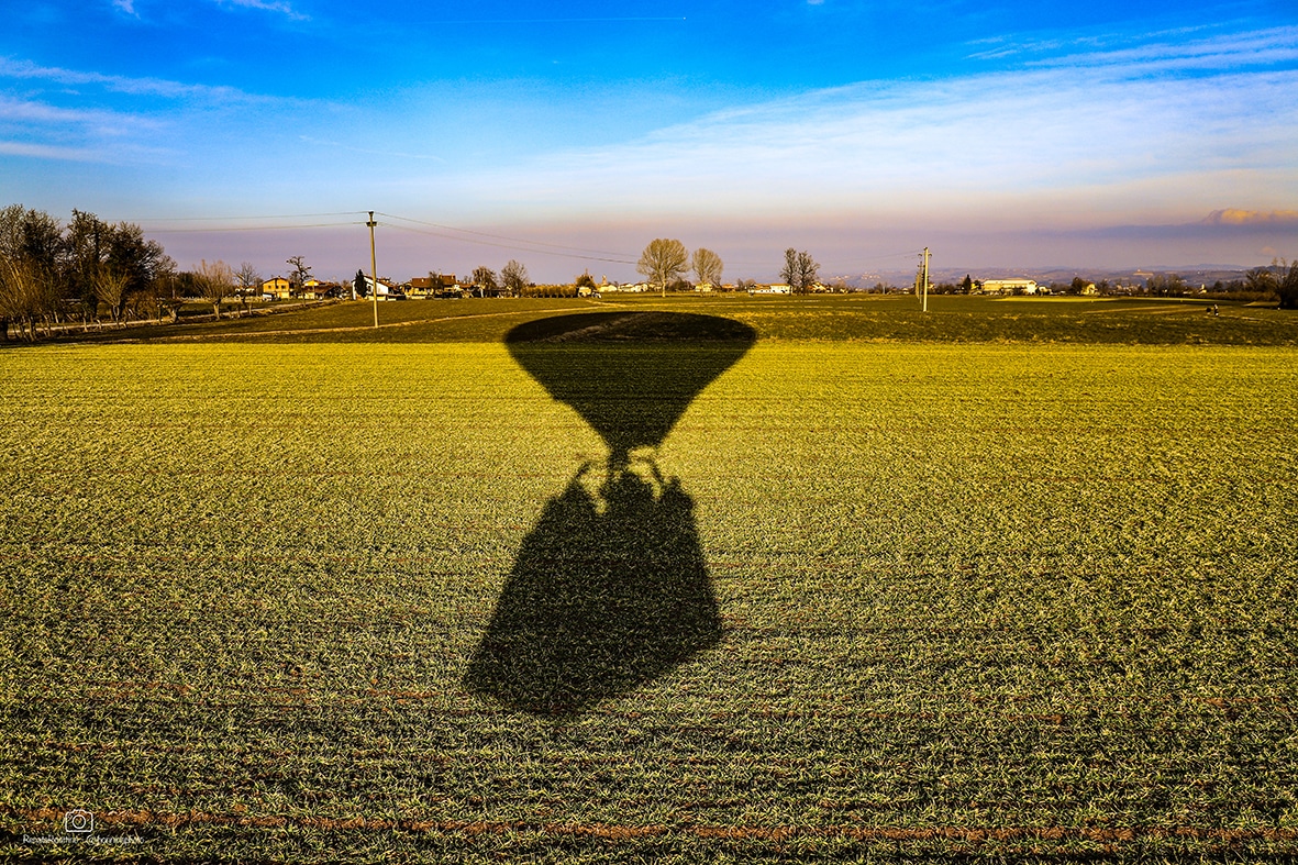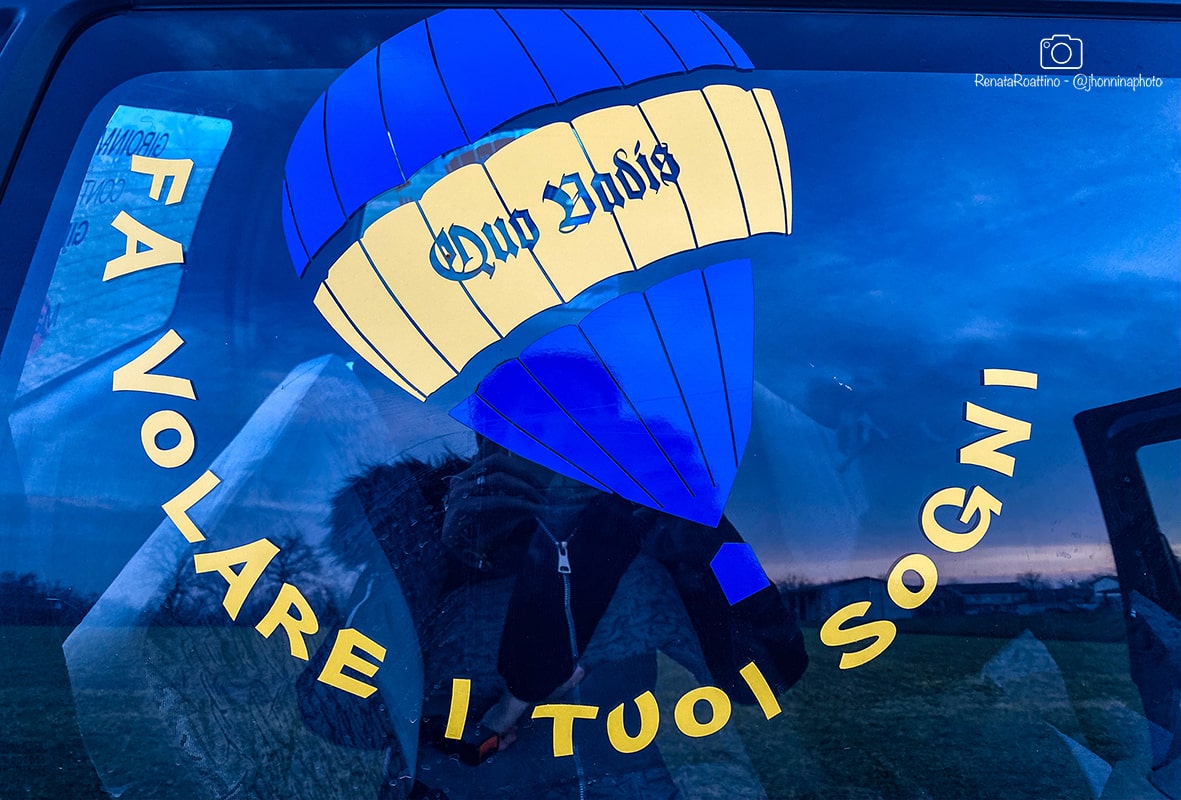 Tutto comincia su un campo. Le mongolfiere ancora non si vedono. Sono distese a terra mentre le funi vengono controllate e tesate, mentre i bruciatori vengono prima collegati e poi accesi, i pesi legati perché per sbaglio nessun cestello si alzi senza un pilota a bordo, i ventilatori girano e le pale pompano l’aria facendo gonfiare i palloni che presto prenderanno il volo. L’attività è febbrile perché tutto il team che porterà gli ospiti in volo ha un compito preciso, ma tutto si svolge senza fretta, senza frenesia, nel rispetto di un rituale antico che si ripete ogni volta che si vola.