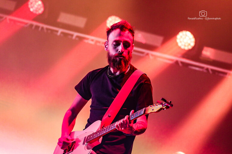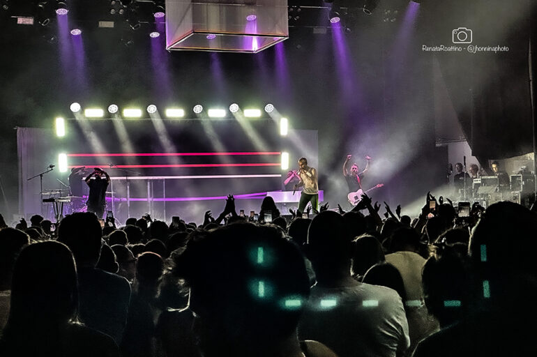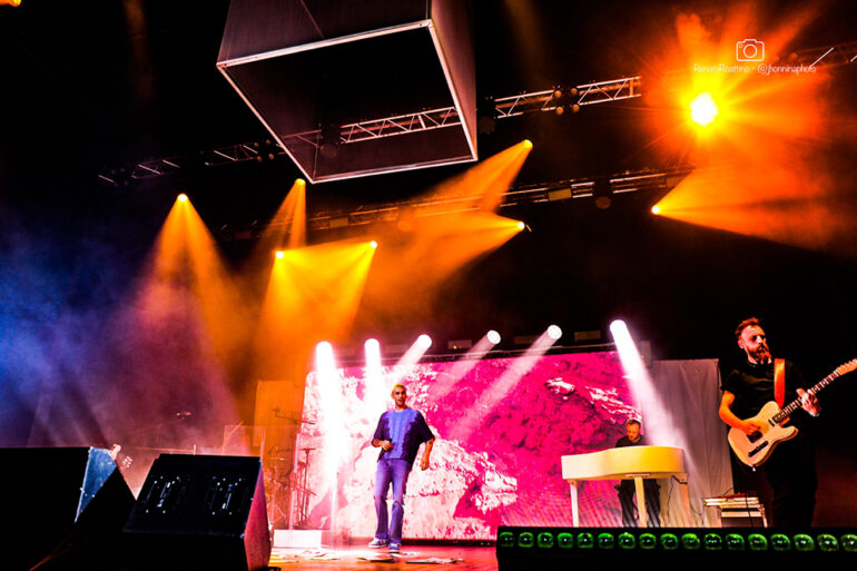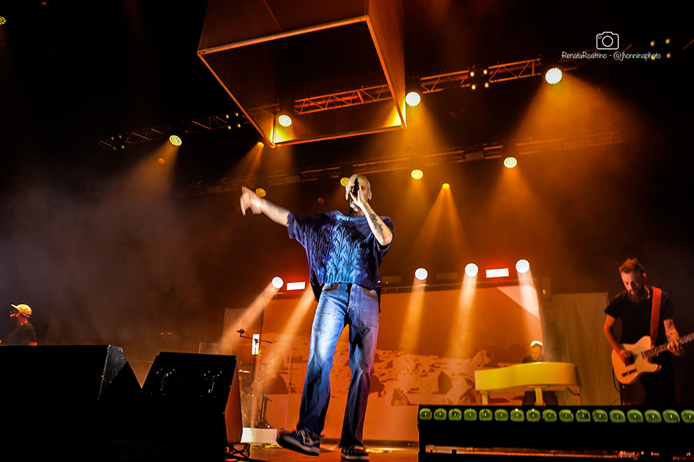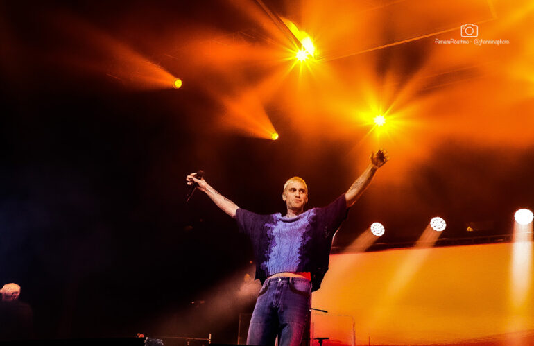 Ieri sera a Torino, un altro trionfo. Un palco imponente, luci che valorizzavano la performance, una band che ritmava non solo Supereroi, eseguita quasi in trionfo sotto una cascata di petali, ma anche Fiori di Chernobyl, Meteoriti, 9.3, Ipernova e tutte le hit.