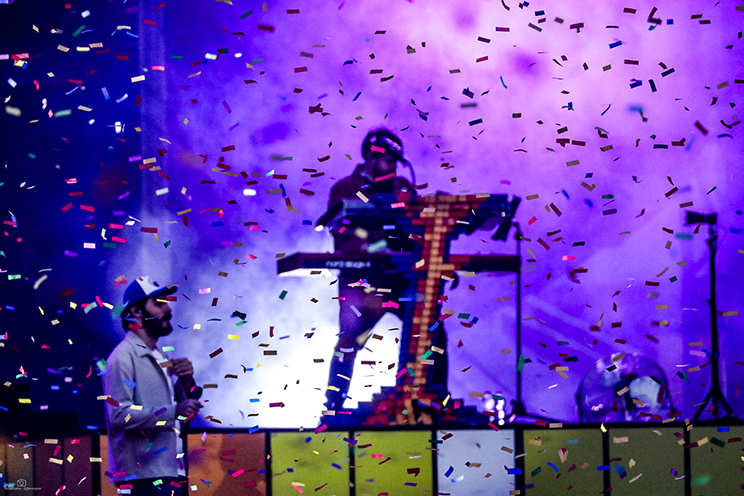 Parte della magia dello show, come spiegato dallo stesso Zanotti, sta nell’essere «una specie di film»: un racconto che i Pinguini Tattici Nucleari hanno scandito sin dall’inizio, con uno svolgimento da tema e una fine epica. Il concerto è stato progettato da due “show designer”, con momenti sospesi fra effetti speciali, suggestive videoproiezioni, giochi di fumo, coriandoli… e persino un tocco di illusione grazie al consulente mago ungherese Clement. L’esibizione, pur nella geniale spettacolarità, ha mantenuto la musica al centro, senza mai sovrastarla.