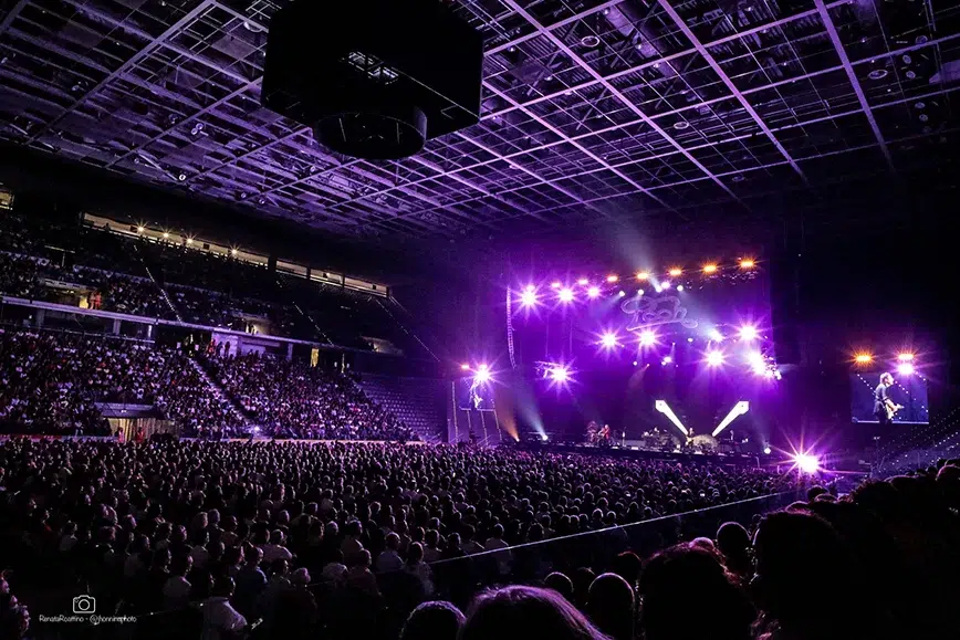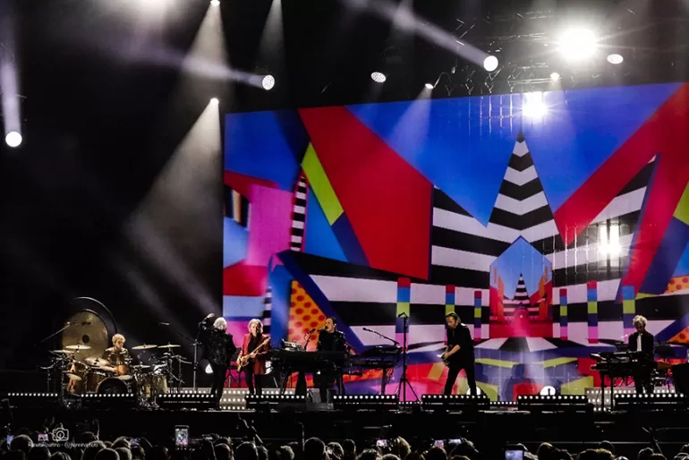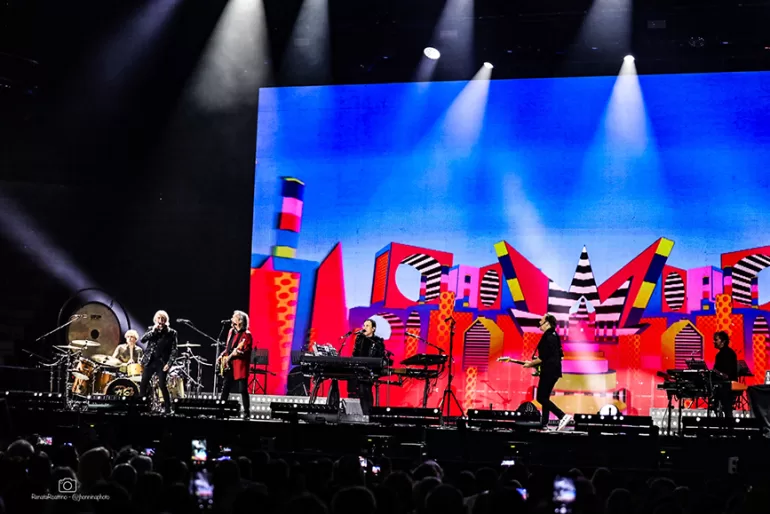Il tour, preceduto a giugno dalla pubblicazione dell’album omonimo con 4 dischi che ripercorrono gli oltre 50 anni di musica del gruppo, va in scena in un tripudio di luci e ledwall su cui corrono grafiche frattali, scene che accompagnano i testi, giochi di luce. Uno spettacolo nello spettacolo così come i fuochi che esplodono durante L’aquila e il Falco, i traccianti che illuminano il palco. E loro tre, a suonare e cantare per 2 ore e 55 minuti.