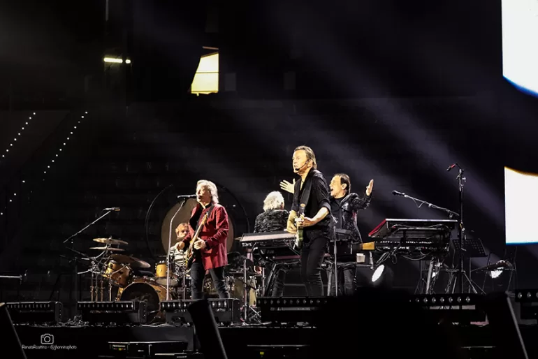 C’è stato il momento di rock sinfonico con Parsifal, Il tempo una donna e la città, Dove comincia il sole; ci sono stati quasi tutti i brani d’amore che li hanno resi famosi; c’è stato il ricordo emozionante e il saluto a Stefano che è sempre con loro; ci sono stati gli intermezzi con Riccardo Fogli. E ci sono stati loro, accompagnati da Phil Mer alla batteria e alle seconde tastiere da Danilo Ballo, già loro arrangiatore.