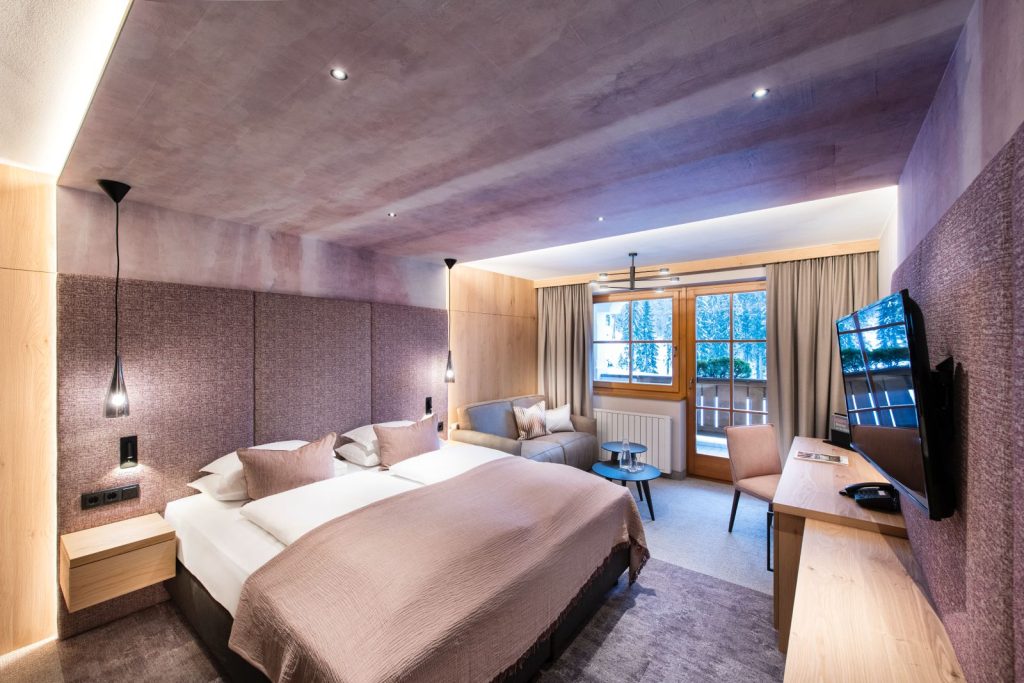 Affacciato proprio sulla pista, posizione perfetta l’inverno ed altrettanto al crocevia dei sentieri, quando la neve non la fa da padrona, Sonnalp regala panorami spettacolari. L’architettura tradizionale si fonde con il design moderno, ogni dettaglio è curato con amore, partendo dalle 39 camere che, arredate con uno stile alpino contemporaneo, sono realizzate con legni naturali e tessuti pregiati per un’atmosfera davvero rilassante. Ogni stanza è dotata di balcone vista montagna,