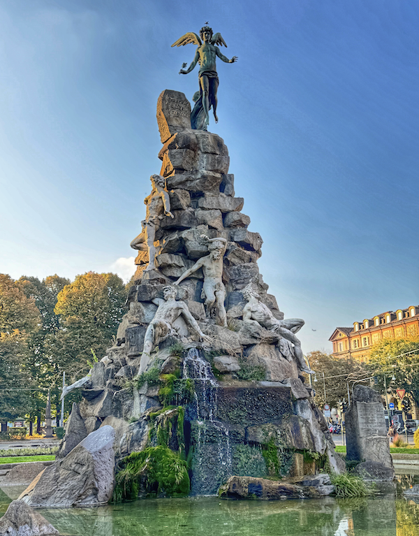 Al centro, il Monumento al Traforo del Frejus con il suo angelo dalle sembianze luciferine e la stella a cinque punte rovesciata, è considerato l’accesso alle forze oscure. Si dice che sotto la piazza sorgessero necropoli romane.