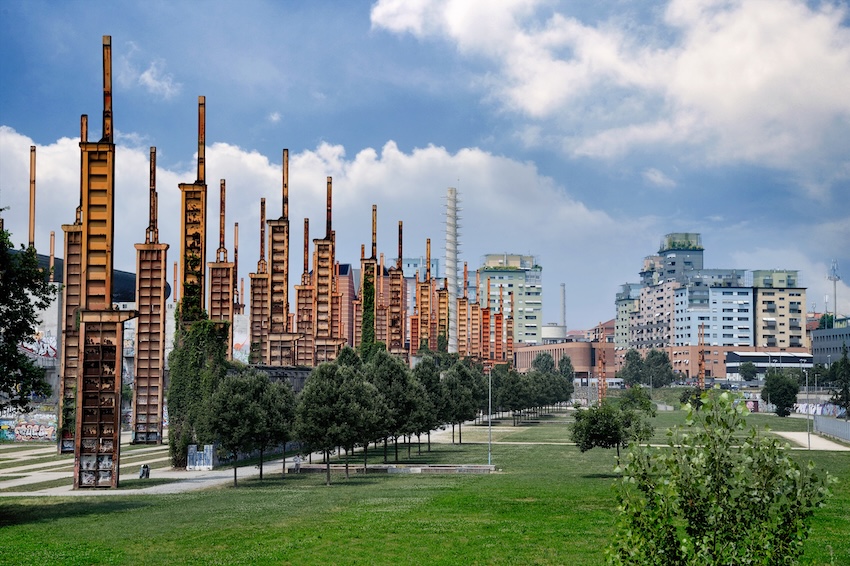 Ogni area integra ambienti naturali e preesistenze del passato industriale, conservate e rifunzionalizzate, come  la torre di raffreddamento della Michelin.