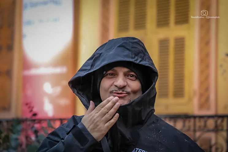 E anche questo pomeriggio, nonostante la pioggia, il muro delle interviste si anima, il pennarello continua ad aumentare le firme sul tableau che testimonia il passaggio degli artisti. Qualcuno con cappelli a tesa larga, qualcuno con i poncho, qualcuno sfida l’acqua, qualcuno porta gli ombrelli.